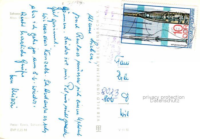 72641260 alte Postkarte Schwerin Mecklenburg Alter Garten Bruecke Kirche postalisch gelaufen Erhaltung siehe scans [FriedD77] KatCode: 11110013004000