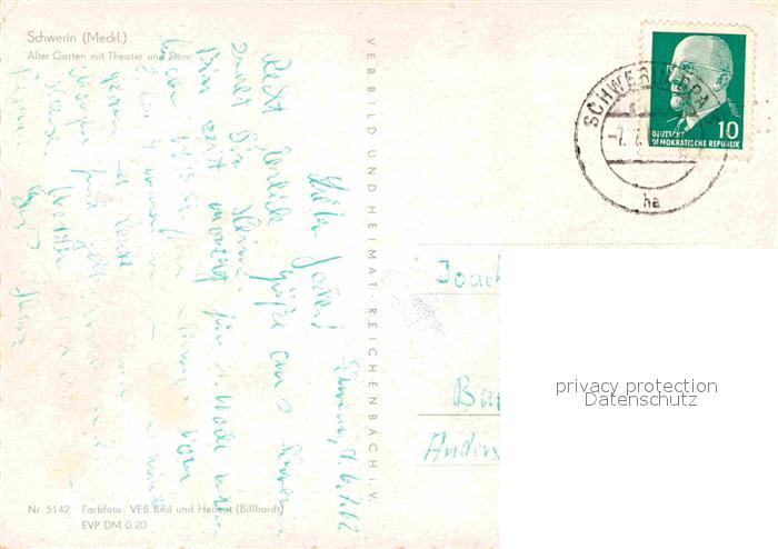 72903800 alte Postkarte Schwerin Mecklenburg Alter Garten mit Theater und Dom postalisch gelaufen Erhaltung siehe scans [FriedD77] KatCode: 11110013004000