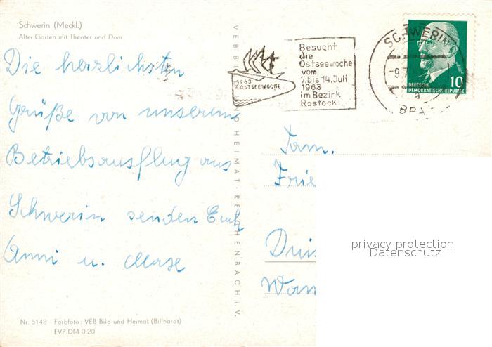 73063415 alte Postkarte Schwerin Mecklenburg Alter Garten Theater Dom postalisch gelaufen Erhaltung siehe scans [KathaD81] KatCode: 11110013004000