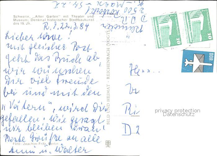 72168477 alte Postkarte Schwerin Mecklenburg Alter Garten Theater Museum Denkmal historischer Stadtbaukunst postalisch gelaufen Erhaltung siehe scans KatCode: 11110013004000