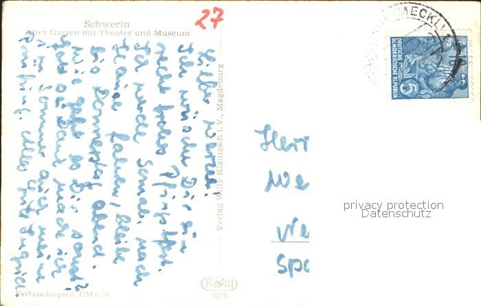 72361906 alte Postkarte Schwerin Mecklenburg Alter Garten Theater Museum postalisch gelaufen Erhaltung siehe scans KatCode: 11110013004000