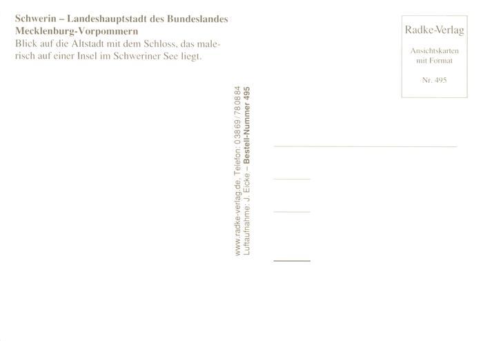 73880207 Schwerin Mecklenburg Altstadtblick mit Schloss Fliegeraufnahme postalisch nicht gelaufen Erhaltung siehe scans [WerneD78] KatCode: 11110013004000