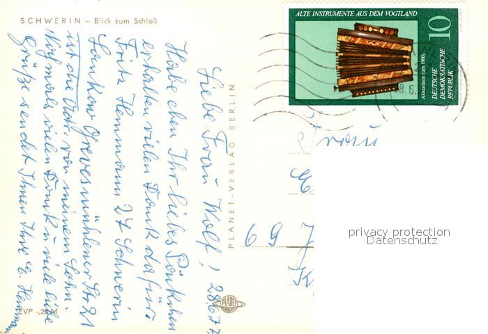 73043752 alte Postkarte Schwerin Mecklenburg Blick zum Schloss postalisch gelaufen Erhaltung siehe scans [WerneD78] KatCode: 11110013004000