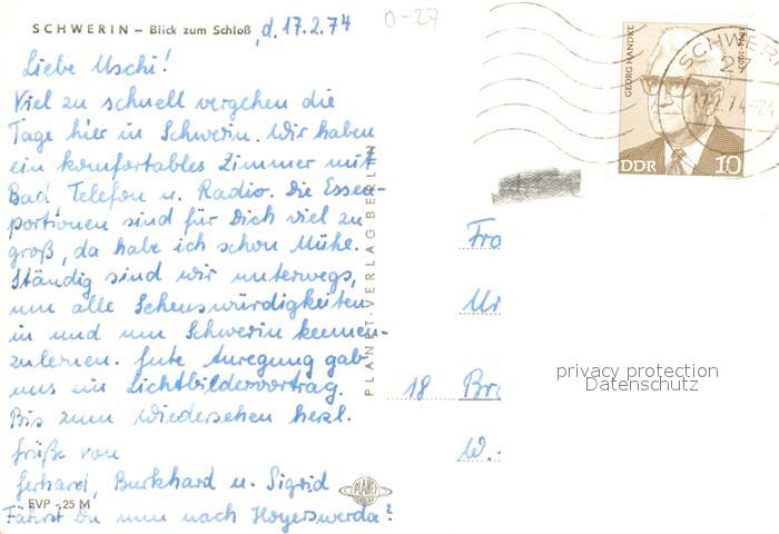 72982237 alte Postkarte Schwerin Mecklenburg Blick zum Schloss mit Fahrgastschiff postalisch gelaufen Erhaltung siehe scans [WerneD78] KatCode: 11110013004000
