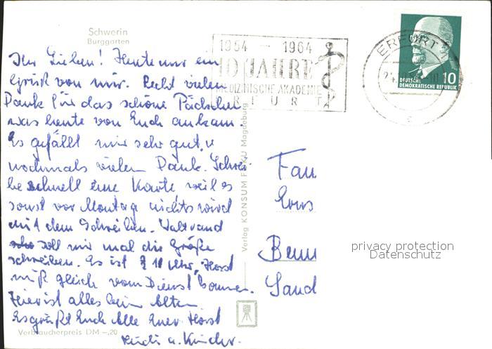 72318698 alte Postkarte Schwerin Mecklenburg Burggarten postalisch gelaufen Erhaltung siehe scans KatCode: 11110013004000