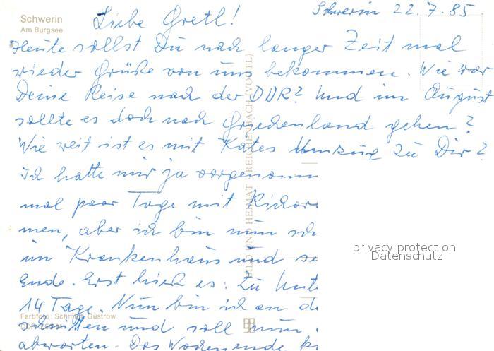 73013153 Schwerin Mecklenburg Burgsee postalisch nicht gelaufen Erhaltung siehe scans [KathaD81] KatCode: 11110013004000