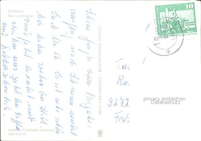 72382719 alte Postkarte Schwerin Mecklenburg Dom Theater postalisch gelaufen Erhaltung siehe scans KatCode: 11110013004000