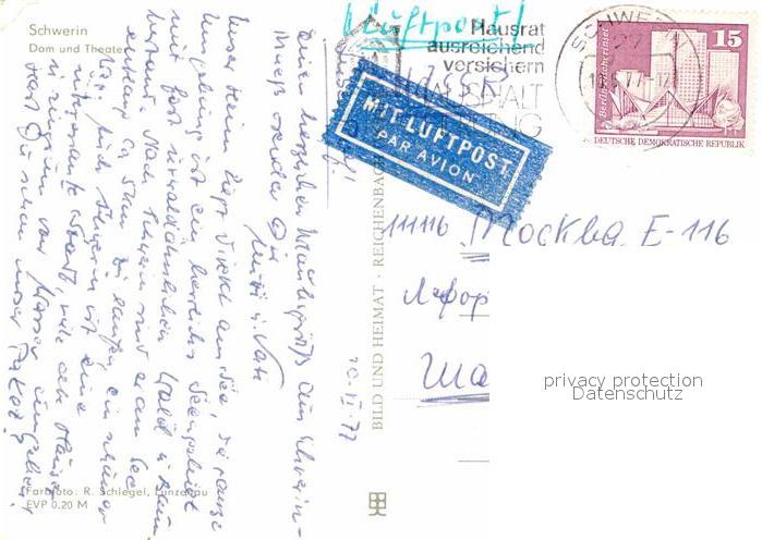 72631220 alte Postkarte Schwerin Mecklenburg Dom und Theater postalisch gelaufen Erhaltung siehe scans [LiesaD40] KatCode: 11110013004000
