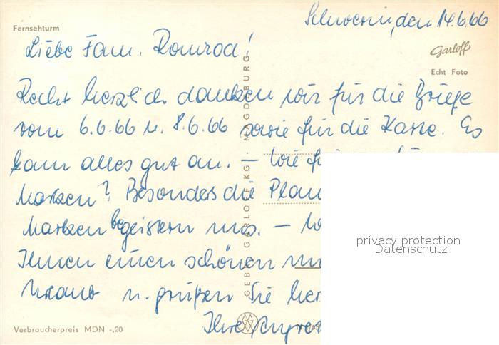 72980741 Schwerin Mecklenburg Fernsehturm postalisch nicht gelaufen Erhaltung siehe scans [FriedD77] KatCode: 11110013004000