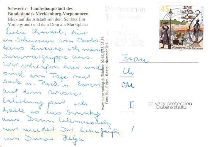 72890265 alte Postkarte Schwerin Mecklenburg Fliegeraufnahme Altstadt Schloss Dom Marktplatz postalisch gelaufen Erhaltung siehe scans [AndreD76] KatCode: 11110013004000