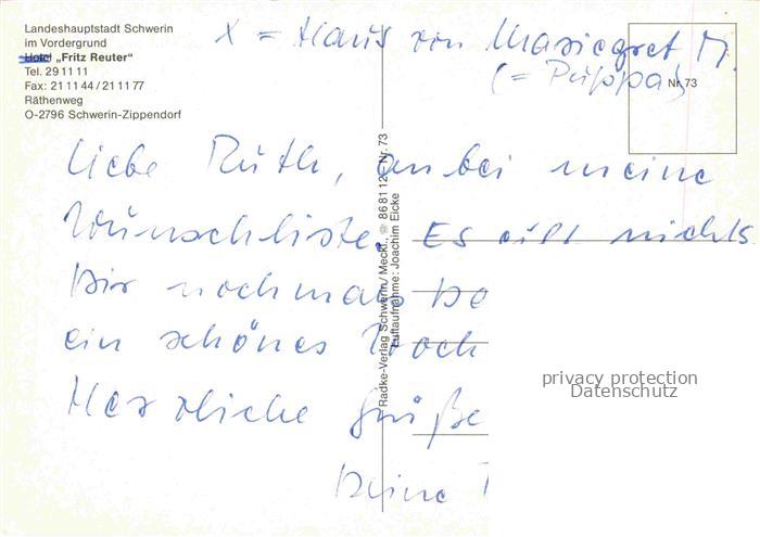 74044024 SCHWERIN Mecklenburg Fliegeraufnahme mit Hotel Fritz Reuter postalisch nicht gelaufen Erhaltung siehe scans [WerneD78] KatCode: 11110013004000