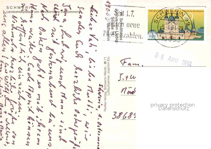 72871306 alte Postkarte Schwerin Mecklenburg Fliegeraufnahme mit Schloss postalisch gelaufen Erhaltung siehe scans [LiesaD40] KatCode: 11110013004000