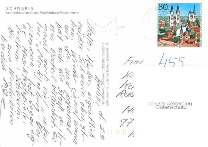 72782562 alte Postkarte Schwerin Mecklenburg Fliegeraufnahme mit Schloss postalisch gelaufen Erhaltung siehe scans [LiesaD40] KatCode: 11110013004000