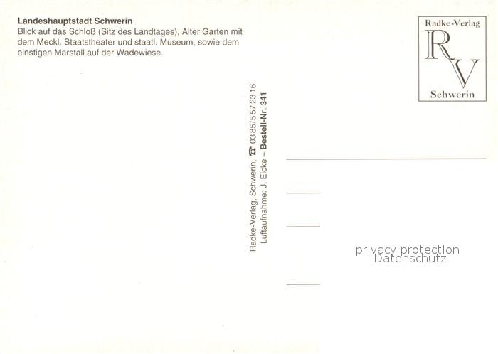 73211811 Schwerin Mecklenburg Fliegeraufnahme mit Schloss Alten Garten Meckl Staatstheater Staatl Museum sowie Marstall postalisch nicht gelaufen Erhaltung siehe scans [WerneD78] KatCode: 11110013004000