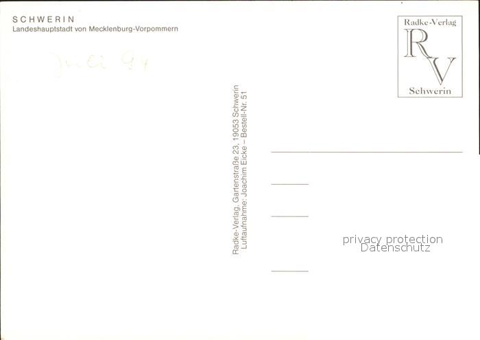 71847408 Schwerin Mecklenburg Fliegeraufnahme mit Schloss Seen postalisch nicht gelaufen Erhaltung siehe scans KatCode: 11110013004000