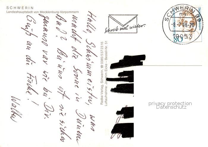 73168524 alte Postkarte Schwerin Mecklenburg Fliegeraufnahme mit Schloss und Kirche postalisch gelaufen Erhaltung siehe scans [WerneD78] KatCode: 11110013004000
