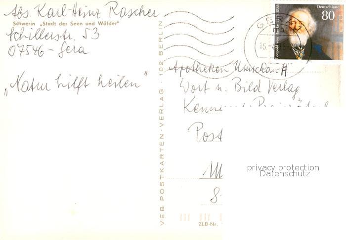 73828680 alte Postkarte Schwerin Mecklenburg Fliegeraufnahme mit Schloss postalisch gelaufen Erhaltung siehe scans [WerneD78] KatCode: 11110013004000