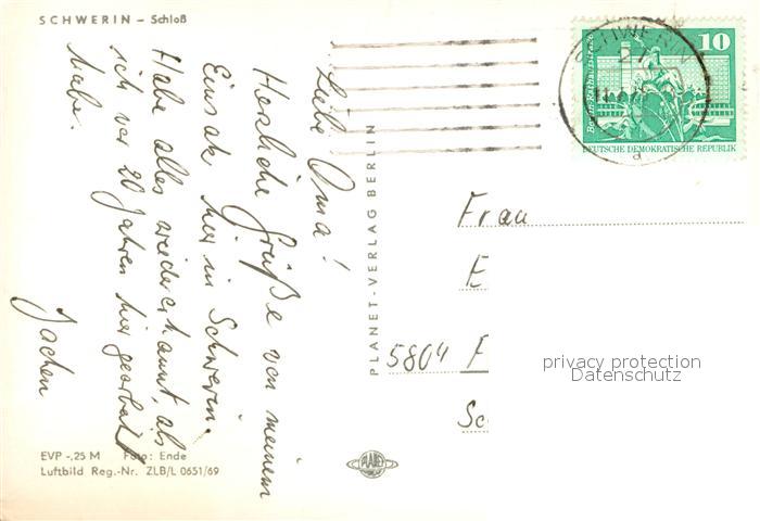 73725811 alte Postkarte Schwerin Mecklenburg Fliegeraufnahme Schloss postalisch gelaufen Erhaltung siehe scans [LiesaD40] KatCode: 11110013004000