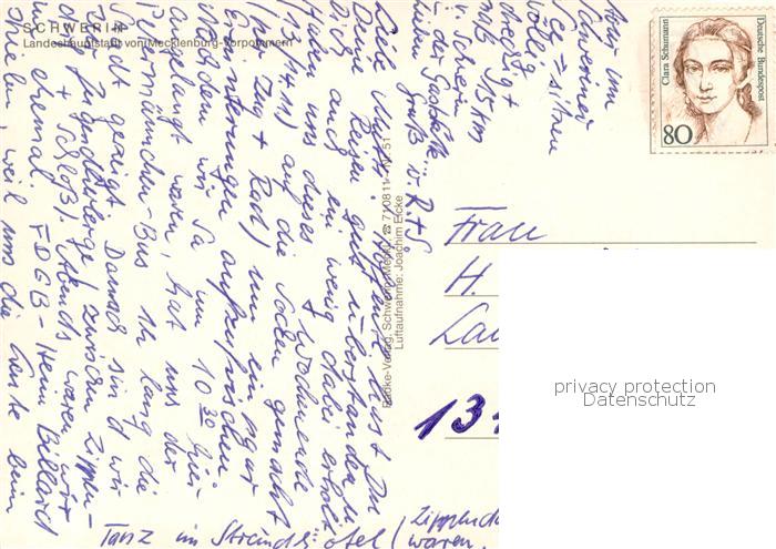 73761378 alte Postkarte Schwerin Mecklenburg Fliegeraufnahme postalisch gelaufen Erhaltung siehe scans [WerneD78] KatCode: 11110013004000