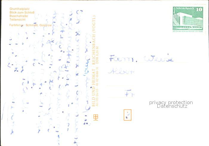 72316565 alte Postkarte Schwerin Mecklenburg Grunthalplatz Schloss Buschstrasse Stadtblick postalisch gelaufen Erhaltung siehe scans KatCode: 11110013004000