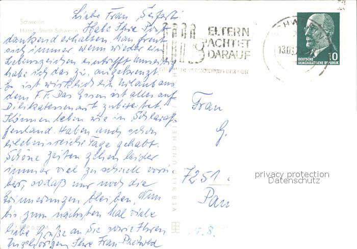 72134321 alte Postkarte Schwerin Mecklenburg Hotel Stadt Schwerin postalisch gelaufen Erhaltung siehe scans KatCode: 11110013004000