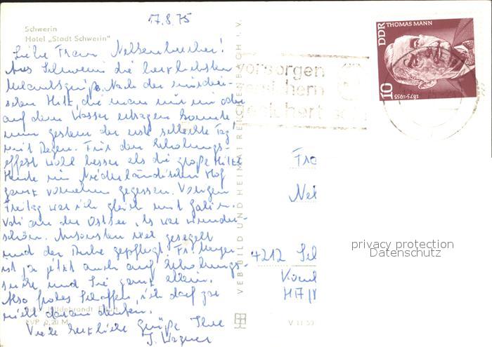 72016084 alte Postkarte Schwerin Mecklenburg Hotel Stadt Schwerin postalisch gelaufen Erhaltung siehe scans KatCode: 11110013004000