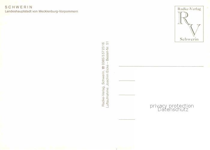 72837230 Schwerin Mecklenburg Landeshauptstadt mit Schloss Park Seen Fliegeraufnahme postalisch nicht gelaufen Erhaltung siehe scans [FriedD77] KatCode: 11110013004000