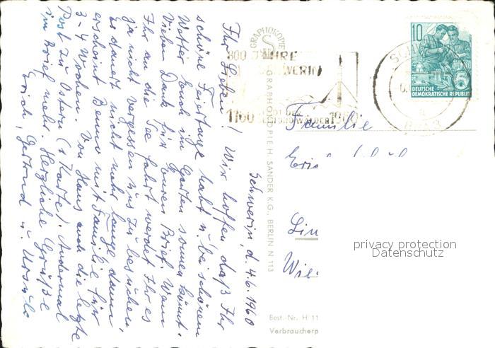 72477235 alte Postkarte Schwerin Mecklenburg Leninplatz Am Burggarten Schloss Staatstheater Stadtblick postalisch gelaufen Erhaltung siehe scans KatCode: 11110013004000