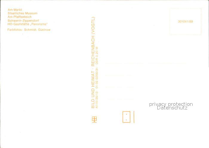 72922574 Schwerin Mecklenburg Markt Museum Pfaffenteich Zippendorf Gaststaette Panorama postalisch nicht gelaufen Erhaltung siehe scans [NatalD47] KatCode: 11110013004000