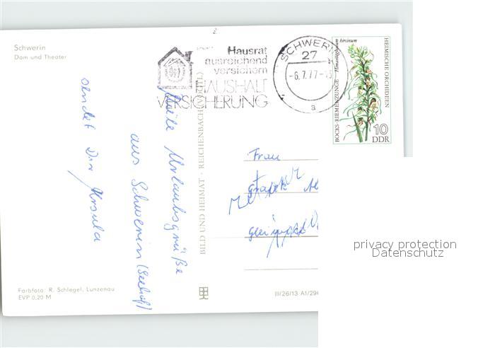 72078781 alte Postkarte Schwerin Mecklenburg mit Dom und Theater Bruecke postalisch gelaufen Erhaltung siehe scans KatCode: 11110013004000