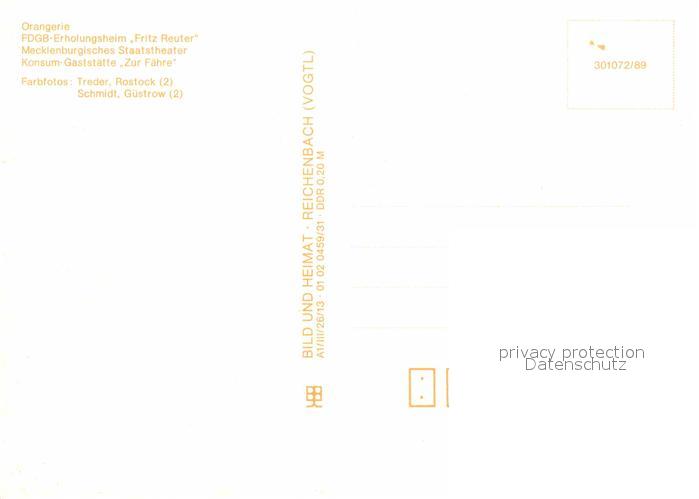 72667548 Schwerin Mecklenburg Orangerie Erholungsheim Staatstheater Gaststaette Zur Faehre postalisch nicht gelaufen Erhaltung siehe scans [AndreD76] KatCode: 11110013004000