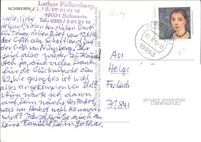 72331416 alte Postkarte Schwerin Mecklenburg Ortskarte Beutel Schwanen-Insel Schweriner Schloss postalisch gelaufen Erhaltung siehe scans KatCode: 11110013004000