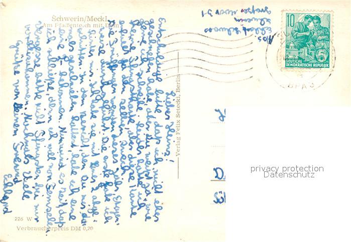 73122102 alte Postkarte Schwerin Mecklenburg Pfaffenteich Dom postalisch gelaufen Erhaltung siehe scans [NatalD47] KatCode: 11110013004000