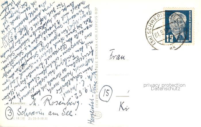 73750369 alte Postkarte Schwerin Mecklenburg Pfaffenteich mit Domblick postalisch gelaufen Erhaltung siehe scans [WerneD78] KatCode: 11110013004000