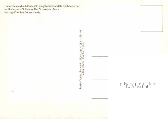 72849834 Schwerin Mecklenburg Rabensteinfeld Inseln Ziegelwerder Kaninchenwerder Fliegeraufnahme postalisch nicht gelaufen Erhaltung siehe scans [NatalD47] KatCode: 11110013004000
