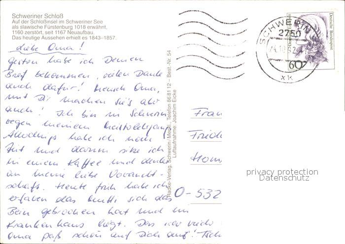 71928868 alte Postkarte Schwerin Mecklenburg Schloss postalisch gelaufen Erhaltung siehe scans KatCode: 11110013004000