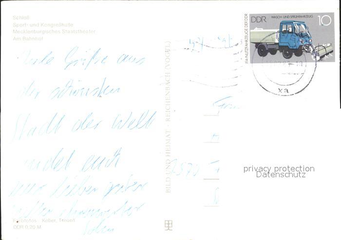 72319893 alte Postkarte Schwerin Mecklenburg Schloss Bahnhof Staatstheater Kongresshalle postalisch gelaufen Erhaltung siehe scans KatCode: 11110013004000