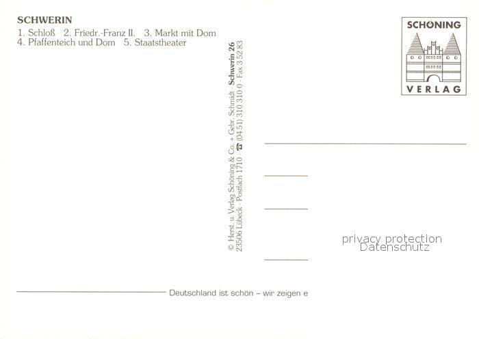 73208046 Schwerin Mecklenburg Schloss Denkmal Friedrich Franz II Markt Dom Pfaffenteich Staatstheater postalisch nicht gelaufen Erhaltung siehe scans [WerneD78] KatCode: 11110013004000