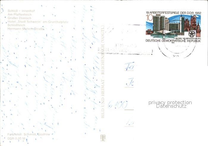 72455970 alte Postkarte Schwerin Mecklenburg Schloss Innenhof Am Pfaffenteich Grosser Dreesch Schlossteich postalisch gelaufen Erhaltung siehe scans KatCode: 11110013004000