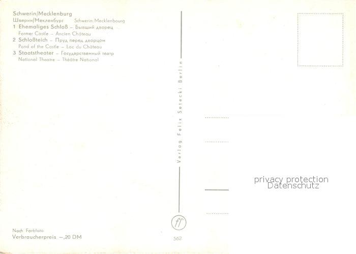 73013150 Schwerin Mecklenburg Schloss Schwaene Staatstheater postalisch nicht gelaufen Erhaltung siehe scans [KathaD81] KatCode: 11110013004000