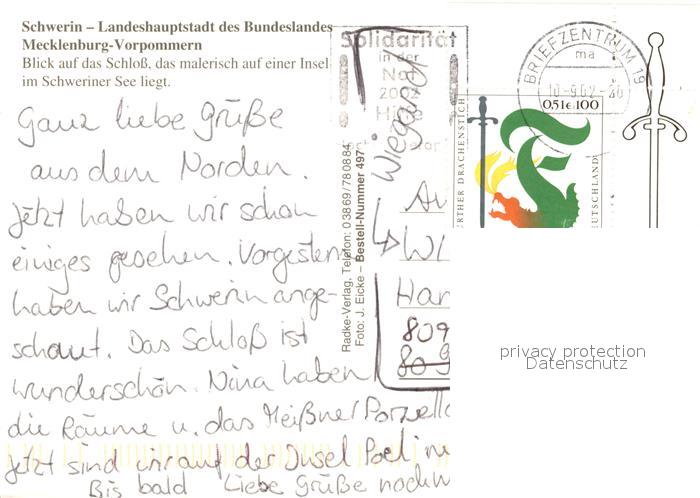 73085271 alte Postkarte Schwerin Mecklenburg Schloss Schweriner See Fliegeraufnahme postalisch gelaufen Erhaltung siehe scans [FriedD77] KatCode: 11110013004000