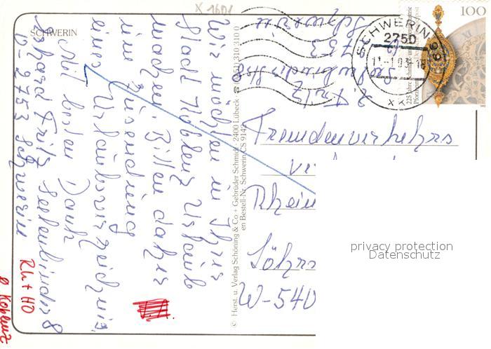 73157164 alte Postkarte Schwerin Mecklenburg Schloss Schweriner See Fliegeraufnahme postalisch gelaufen Erhaltung siehe scans [FriedD77] KatCode: 11110013004000