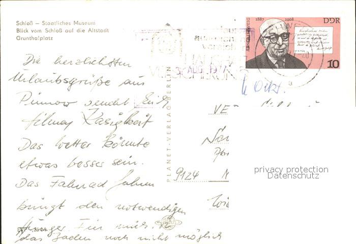 72328236 alte Postkarte Schwerin Mecklenburg Schloss Staatliches Museum Altstadt Grunthalplatz Brunnen Wappen postalisch gelaufen Erhaltung siehe scans KatCode: 11110013004000
