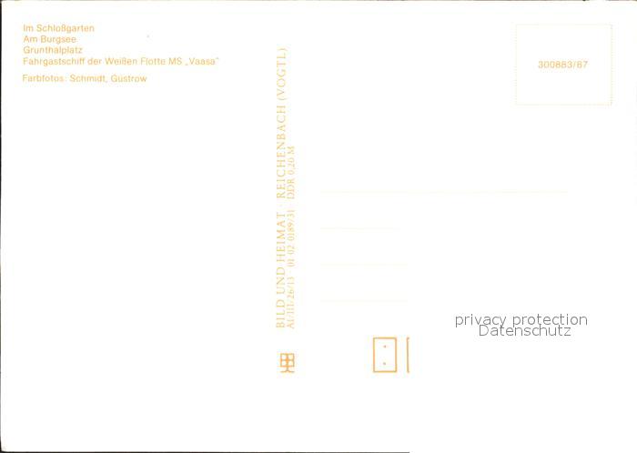 72310694 Schwerin Mecklenburg Schlossgarten Burgsee Gruntahlplatz postalisch nicht gelaufen Erhaltung siehe scans KatCode: 11110013004000