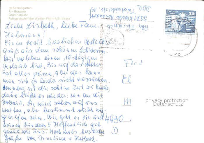 72247176 alte Postkarte Schwerin Mecklenburg Schlossgarten Burgsee Grunthalplatz Fahrgastschiff Weisse Flotte postalisch gelaufen Erhaltung siehe scans KatCode: 11110013004000