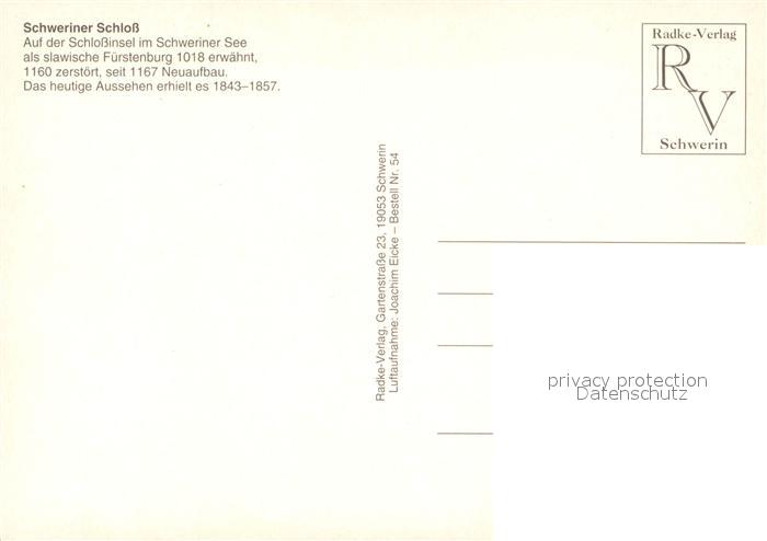 73540952 Schwerin Mecklenburg Schweriner Schloss Fliegeraufnahme postalisch nicht gelaufen Erhaltung siehe scans [WerneD78] KatCode: 11110013004000