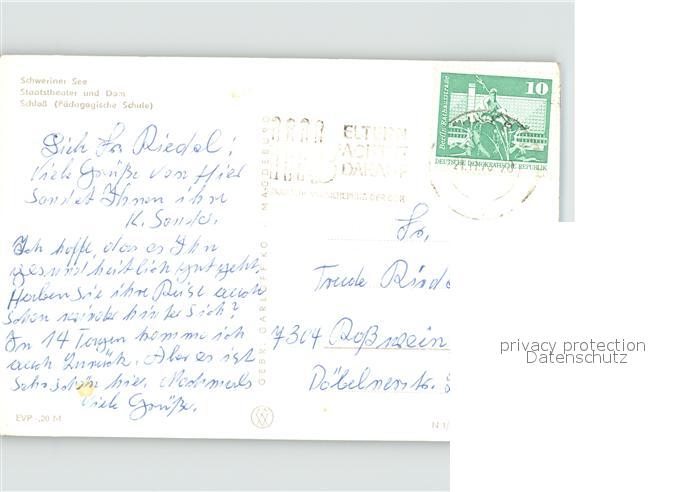 71947159 alte Postkarte Schwerin Mecklenburg See Stadttheater dom Schloss postalisch gelaufen Erhaltung siehe scans KatCode: 11110013004000