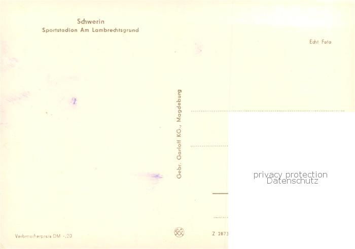 73870879 Schwerin Mecklenburg Sportstadion Am Lambrechtsgrund postalisch nicht gelaufen Erhaltung siehe scans [WerneD78] KatCode: 11110013004000