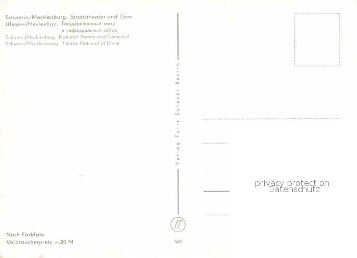 72751779 Schwerin Mecklenburg Staatstheater und Dom Bruecke postalisch nicht gelaufen Erhaltung siehe scans [FriedD77] KatCode: 11110013004000