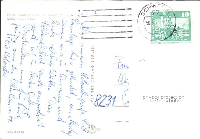 72359909 alte Postkarte Schwerin Mecklenburg Staatstheater und Staatl Museum Schlosspark Dom postalisch gelaufen Erhaltung siehe scans KatCode: 11110013004000